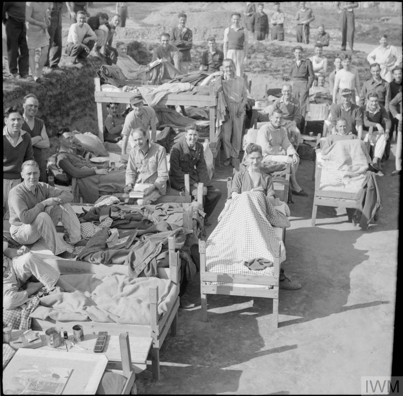 Mapham, Jim, Sick former POWs enjoying the sun in their open air sickbay at Stalag 357 at Fallingbostel, 16.04.1945, IWM (BU 3705), online verfügbar: iwm.org.uk.